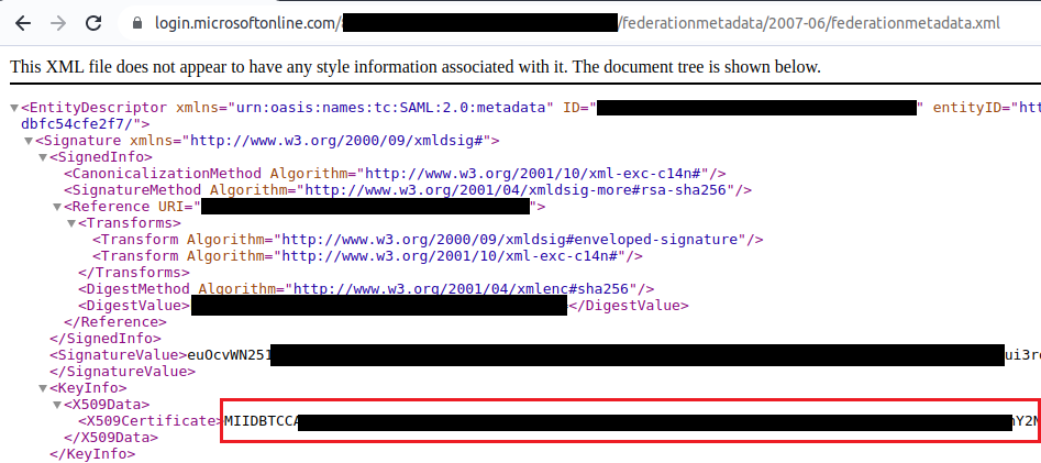 Récupérez le premier certificat X.509 du fichier metadata.