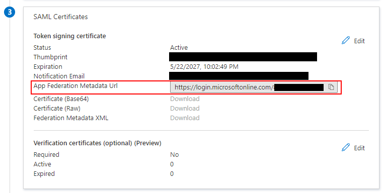 Téléchargez le fichier federationmetadata.xml via l’App Federation Metadata URL.