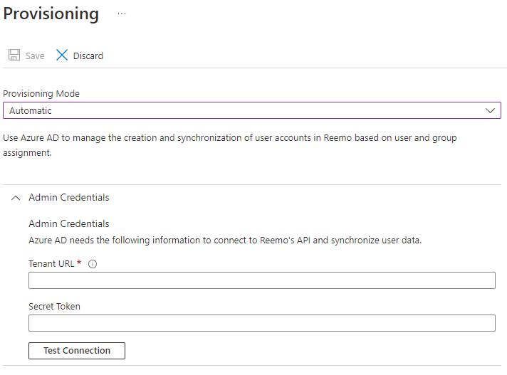 Tenant URL : valeur SCIM API fournie par Reemo (dans la liste des connecteurs).