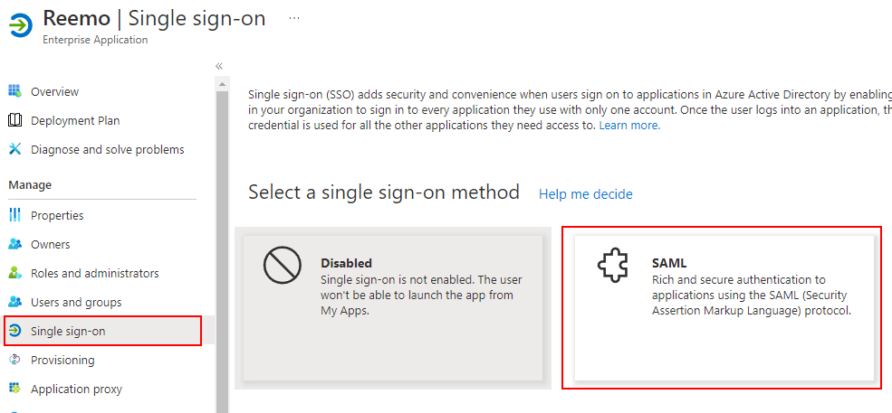 Ouvrez l’application et allez dans Single sign-on > sélectionnez SAML.