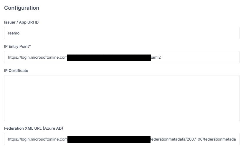 reemo.Les autres champs (Entry Point, Federation XML) seront complétés après la configuration Entra ID.